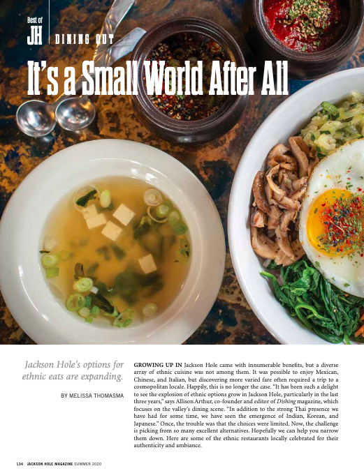 Jackson Hole’s options for ethnic eats are expanding. Published in Jackson Hole Magazine, Summer 2020 (page 134)